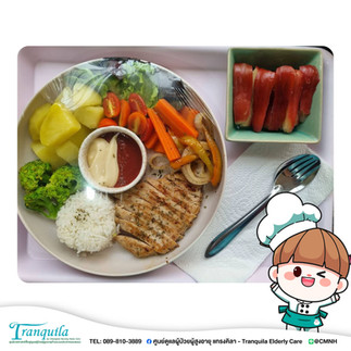 โภชนาการที่ดีมีบทบาทสำคัญในการเสริมสร้างร่างกายให้แข็งแรงและฟื้นตัวได้เร็วขึ้น ที่ Tranquila เรามีนักโภชนาการที่ออกแบบเมนูอาหารให้เหมาะสมกับสภาพร่างกายและความต้องการของผู้ป่วยแต่ละราย โดยคำนึงถึงโรคประจำตัว ข้อจำกัดในการรับประทานอาหาร และความต้องการสารอาหารที่จำเป็น นอกจากนี้ เรายังให้ความสำคัญกับความสะอาดและถูกสุขลักษณะในการเตรียมอาหาร เพื่อลดความเสี่ยงของการติดเชื้อในผู้ป่วยที่มีภูมิคุ้มกันต่ำ ซึ่งการดูแลด้านโภชนาการที่บ้านอาจทำได้ยาก เนื่องจากข้อจำกัดด้านเวลา ความรู้ และความพร้อมในการจัดเตรียมอาหารพิเศษตามความต้องการของแพทย์